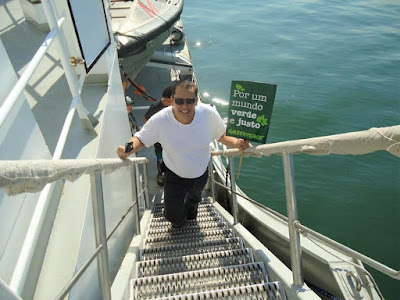 | Na foto o consultor Marcelo Gil no navio do Greenpeace |